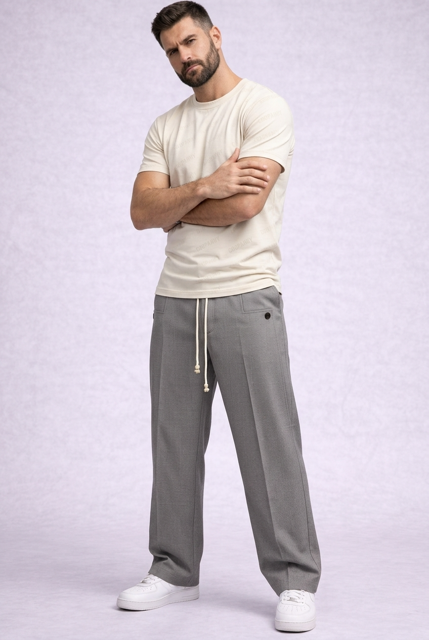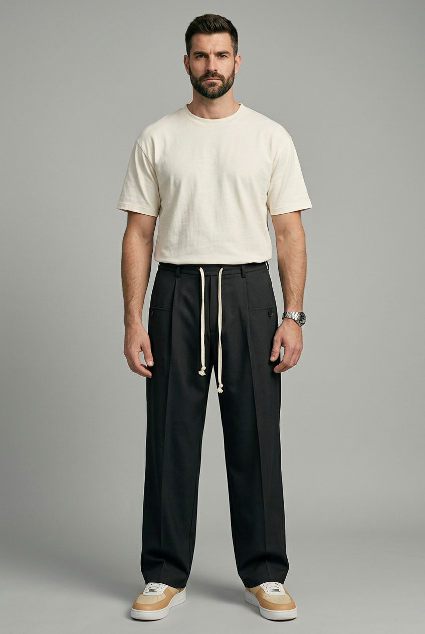 Rowan classic trousers combine refined elegance with modern comfort, featuring a contemporary drawstring waist for flexible wear. The clean cut with a subtle front pleat creates a polished silhouette, while the lightweight, breathable fabric ensures a comfortable feel throughout the day. Suitable for everyday wear, office settings, or elevated casual looks, these trousers adapt effortlessly to different styles and can be worn year-round.