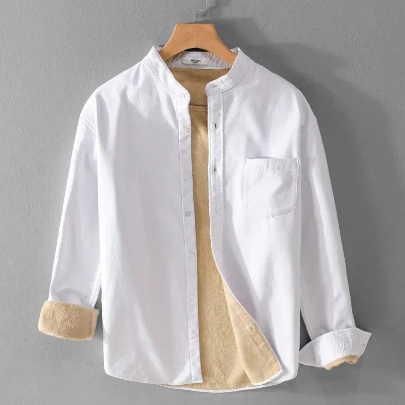 This men’s shirt combines comfort and style, making it the perfect choice for transitional weather and cooler evenings. Made from high-quality organic cotton and lined with soft fleece, it delivers cozy warmth in an elegant design. The modern stand-up collar adds a contemporary touch, making it versatile — wear it solo or as part of a layered look.